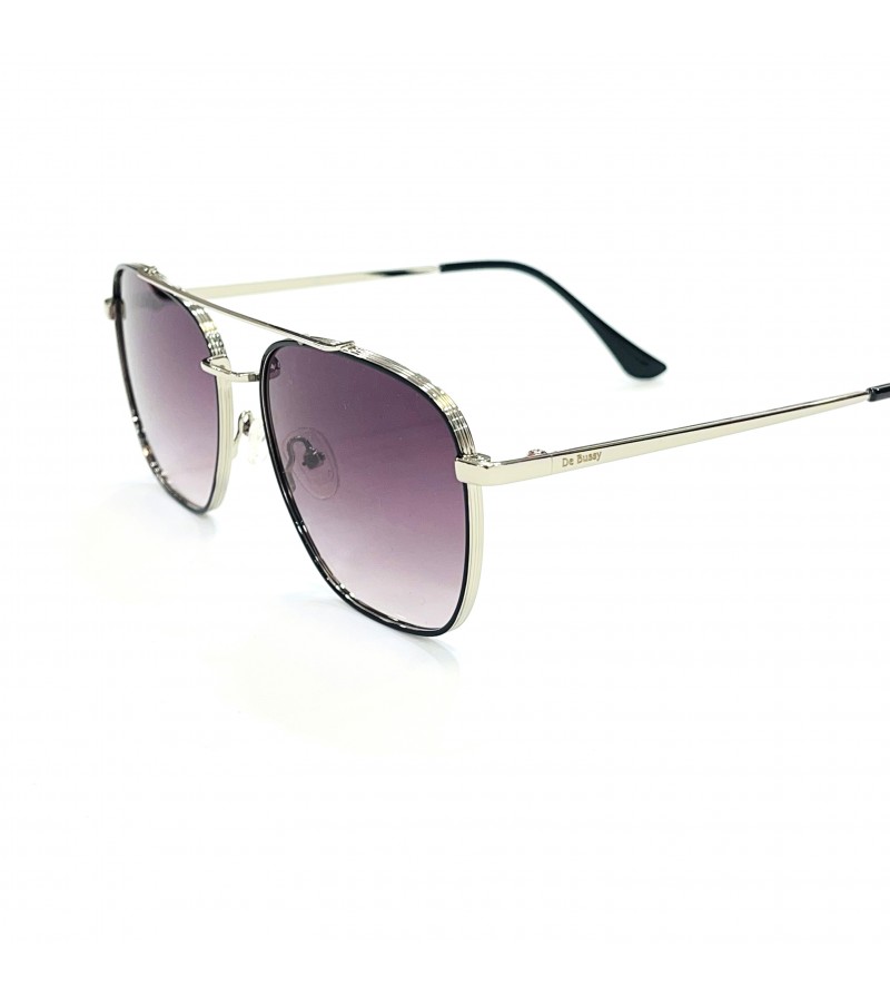 Gafa sol metal. Plata y negro. Doble puente. Lente gris degradado.